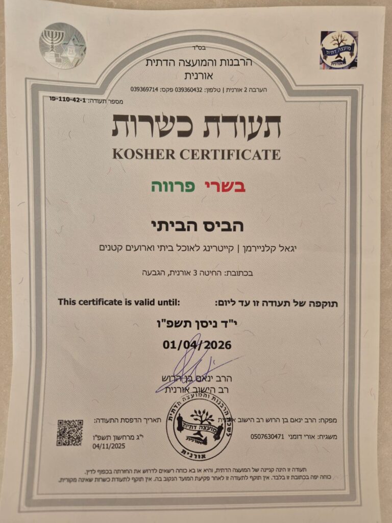 כן. לביס הביתי יש תעודת כשרות בשרי-פרווה מטעם הרבנות של אורנית.